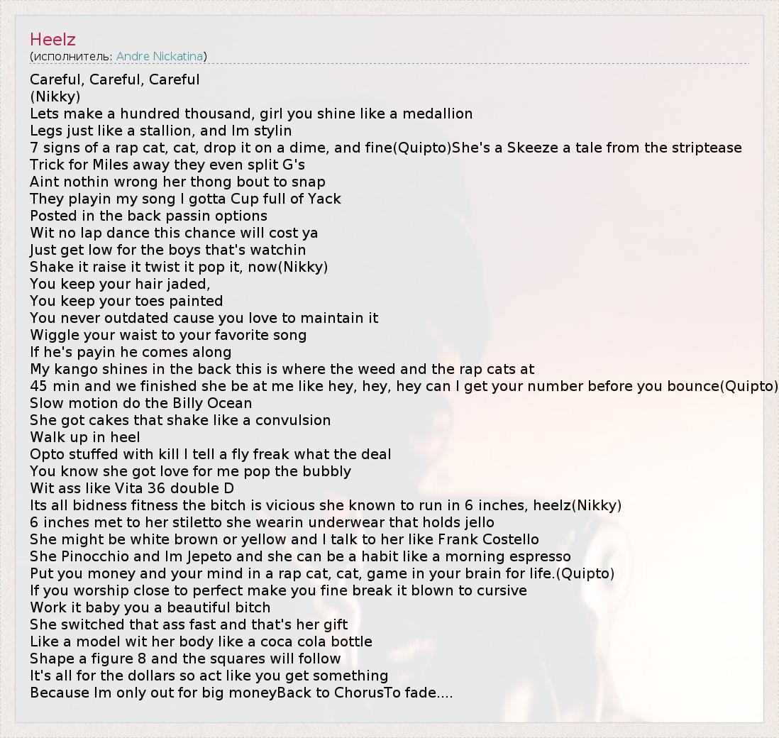7 signs of a rap cat, cat, drop it on a dime, and fine(Quipto)She's a Skeeze a tale from the striptease