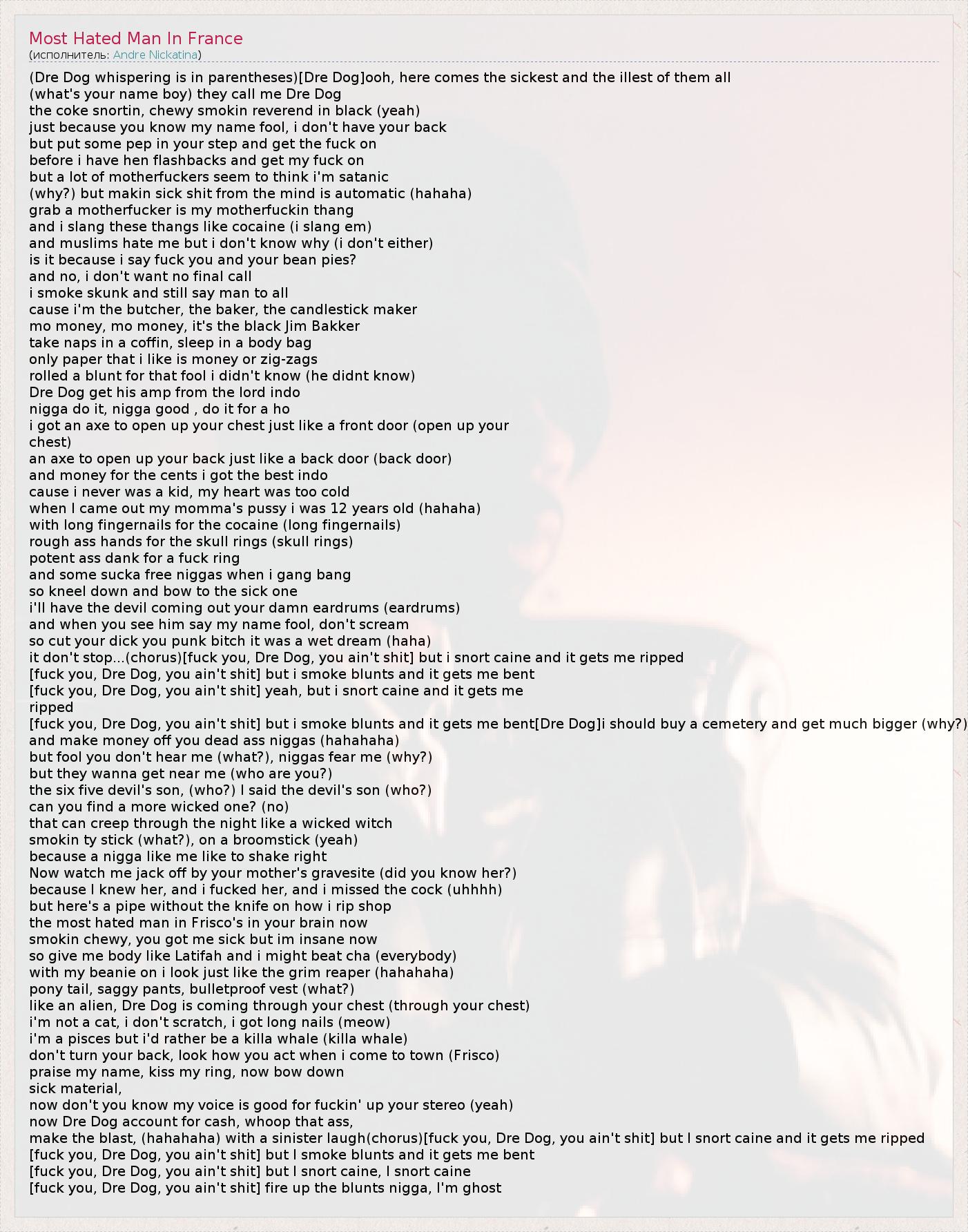 А как ты думаешь, о чем песня "Most Hated Man In France" ?