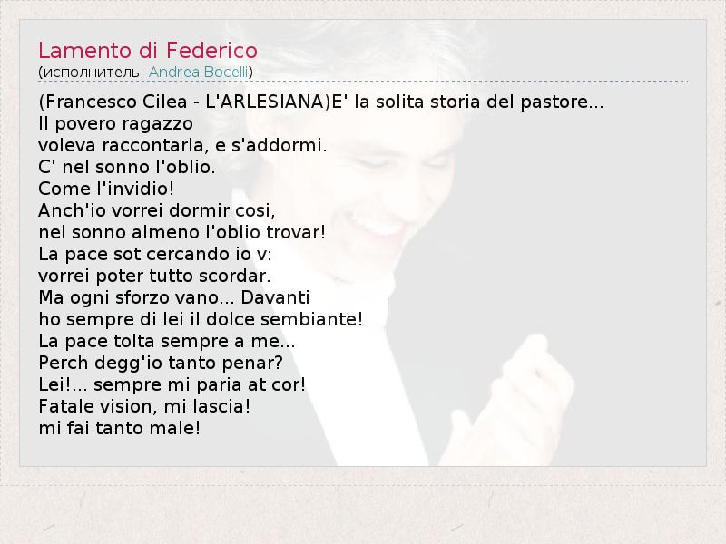 А как ты думаешь, о чем песня "Lamento di Federico" ?