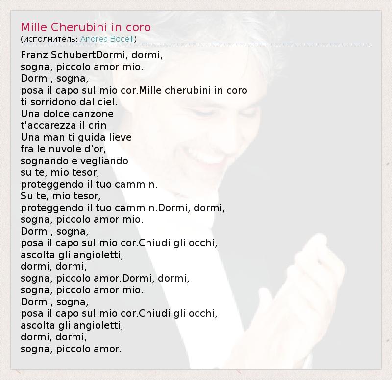 А как ты думаешь, о чем песня "Mille Cherubini in coro" ?