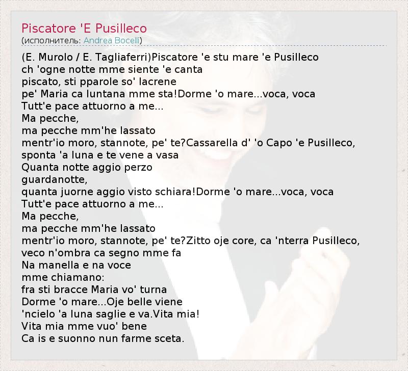 А как ты думаешь, о чем песня "Piscatore 'E Pusilleco" ?