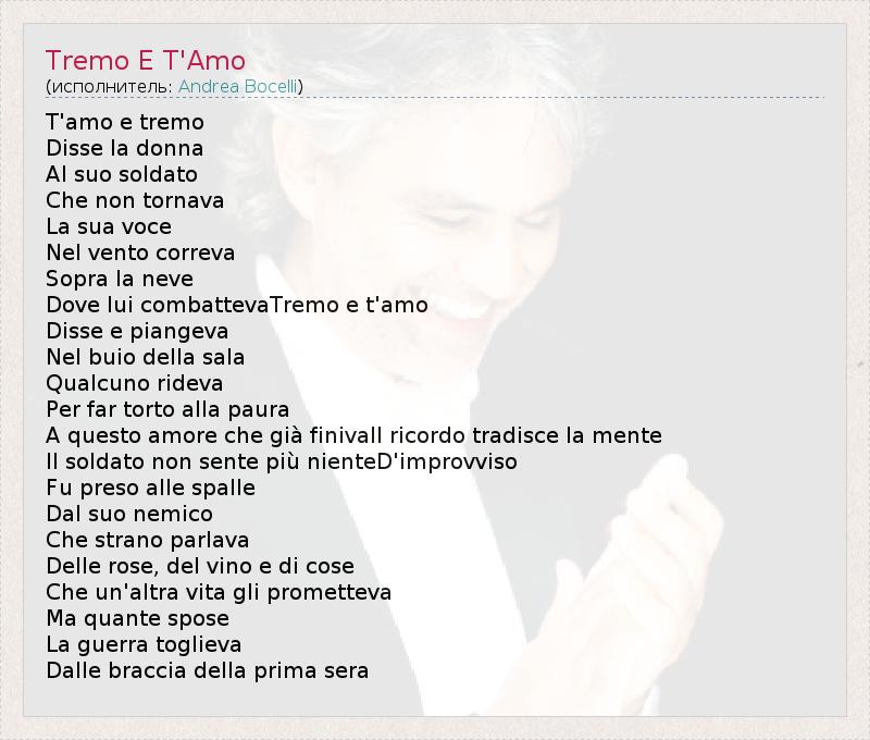 А как ты думаешь, о чем песня "Tremo E T'Amo" ?