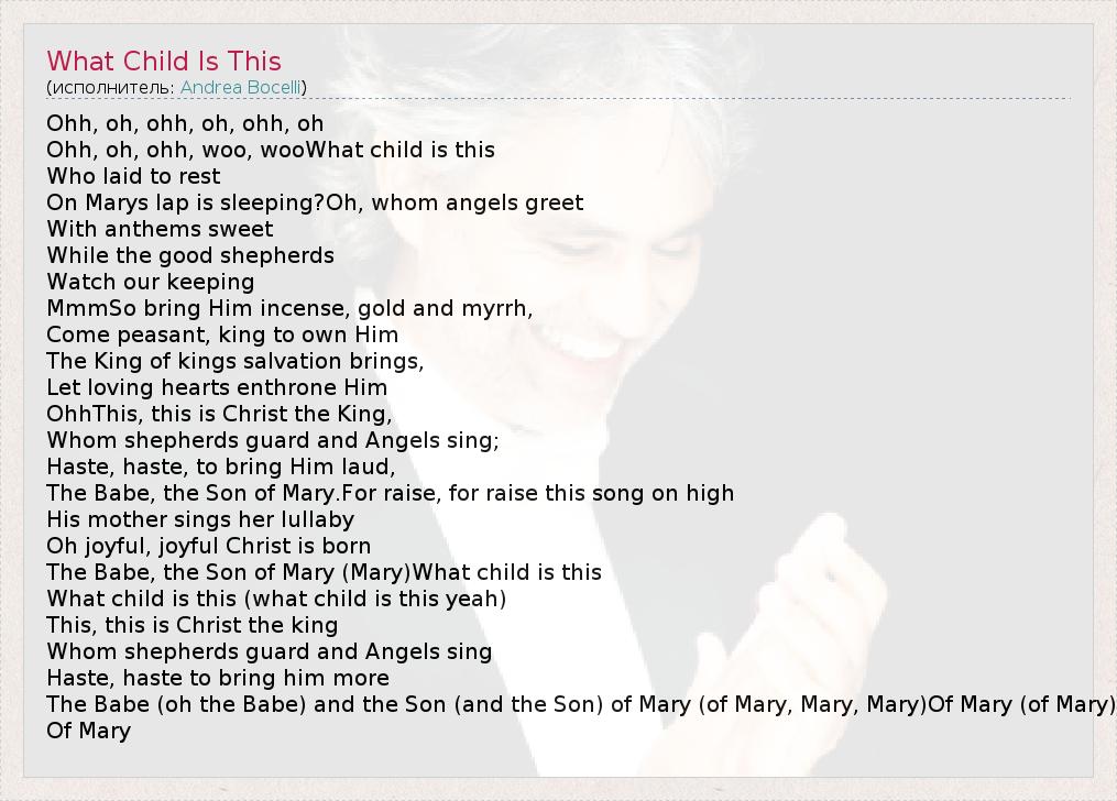 А как ты думаешь, о чем песня "What Child Is This" ?