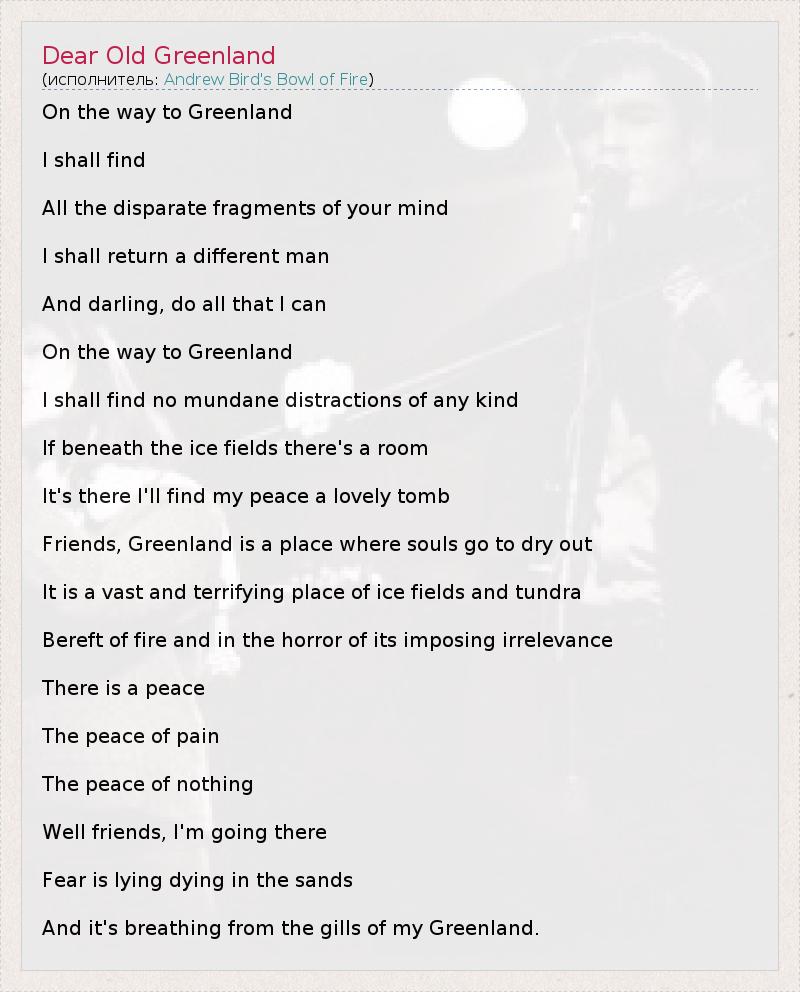 А как ты думаешь, о чем песня "Dear Old Greenland" ?