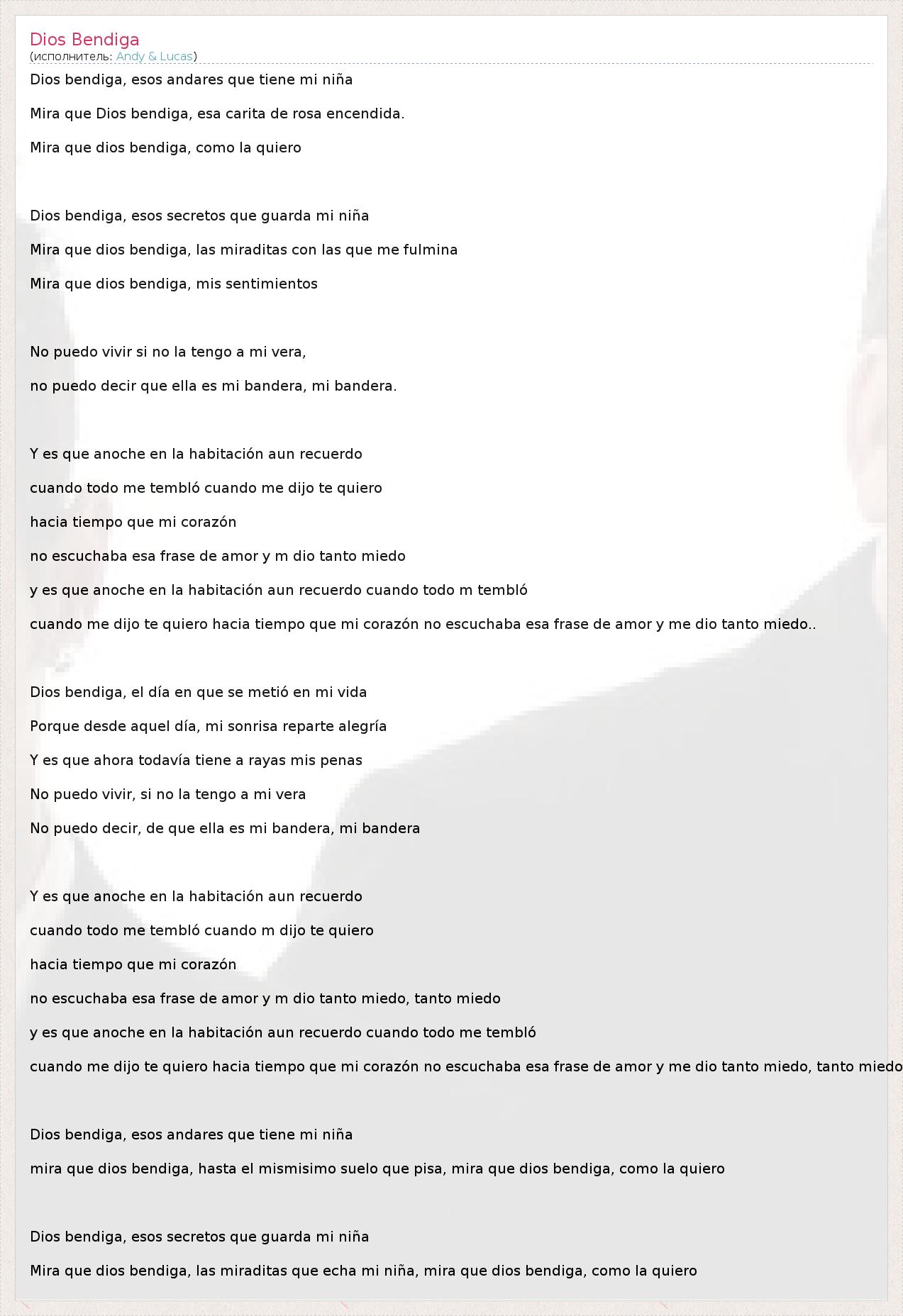А как ты думаешь, о чем песня "Dios Bendiga" ?