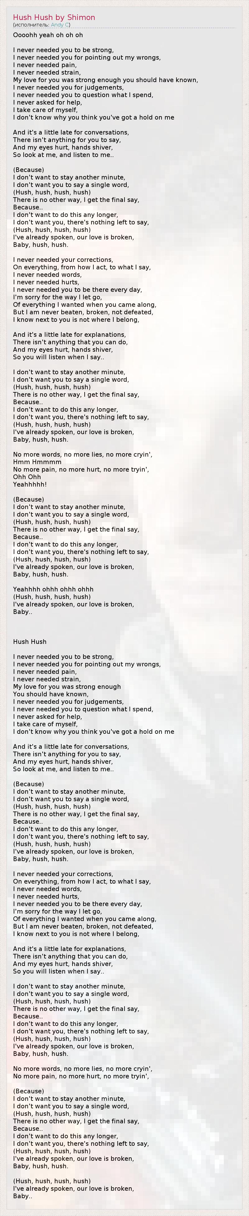 ГлавнаяИсполнителиAndy CHush Hush by Shimon