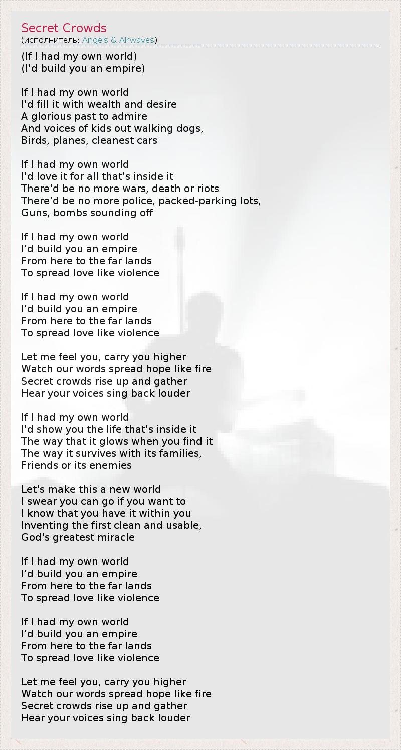 А как ты думаешь, о чем песня "Secret Crowds" ?