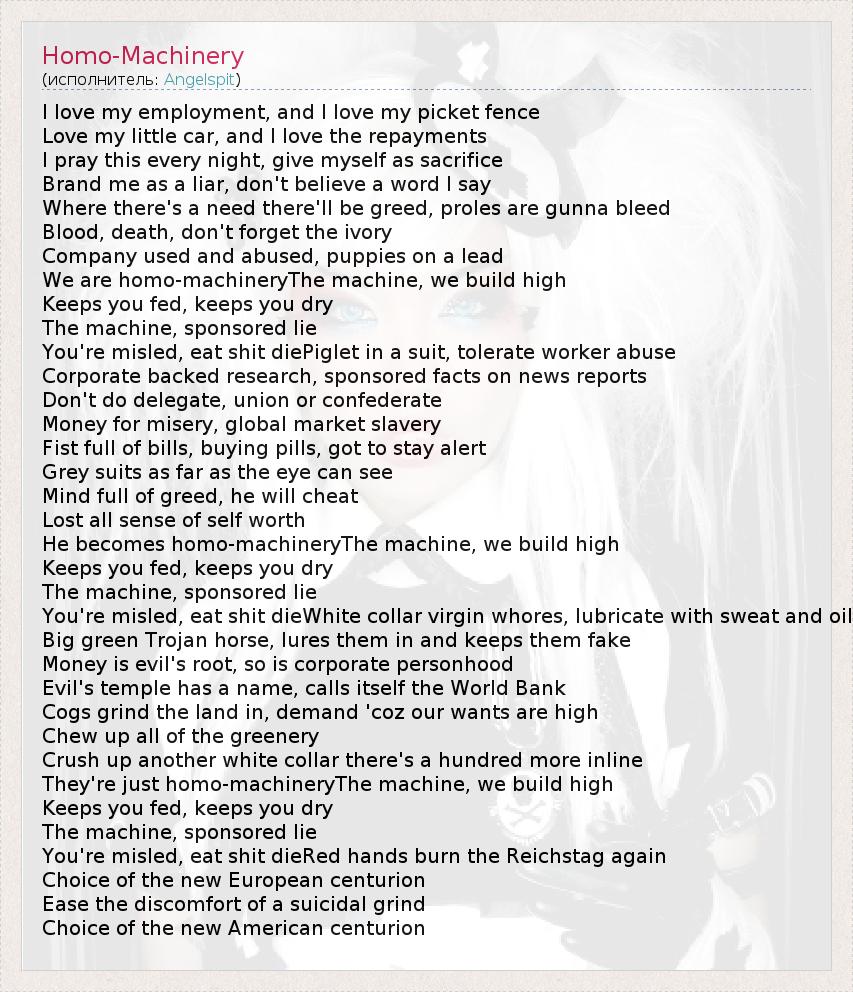 А как ты думаешь, о чем песня "Homo-Machinery" ?
