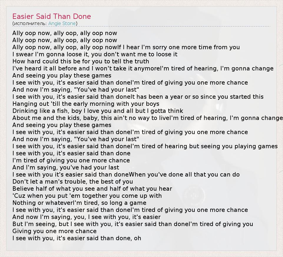 А как ты думаешь, о чем песня "Easier Said Than Done" ?