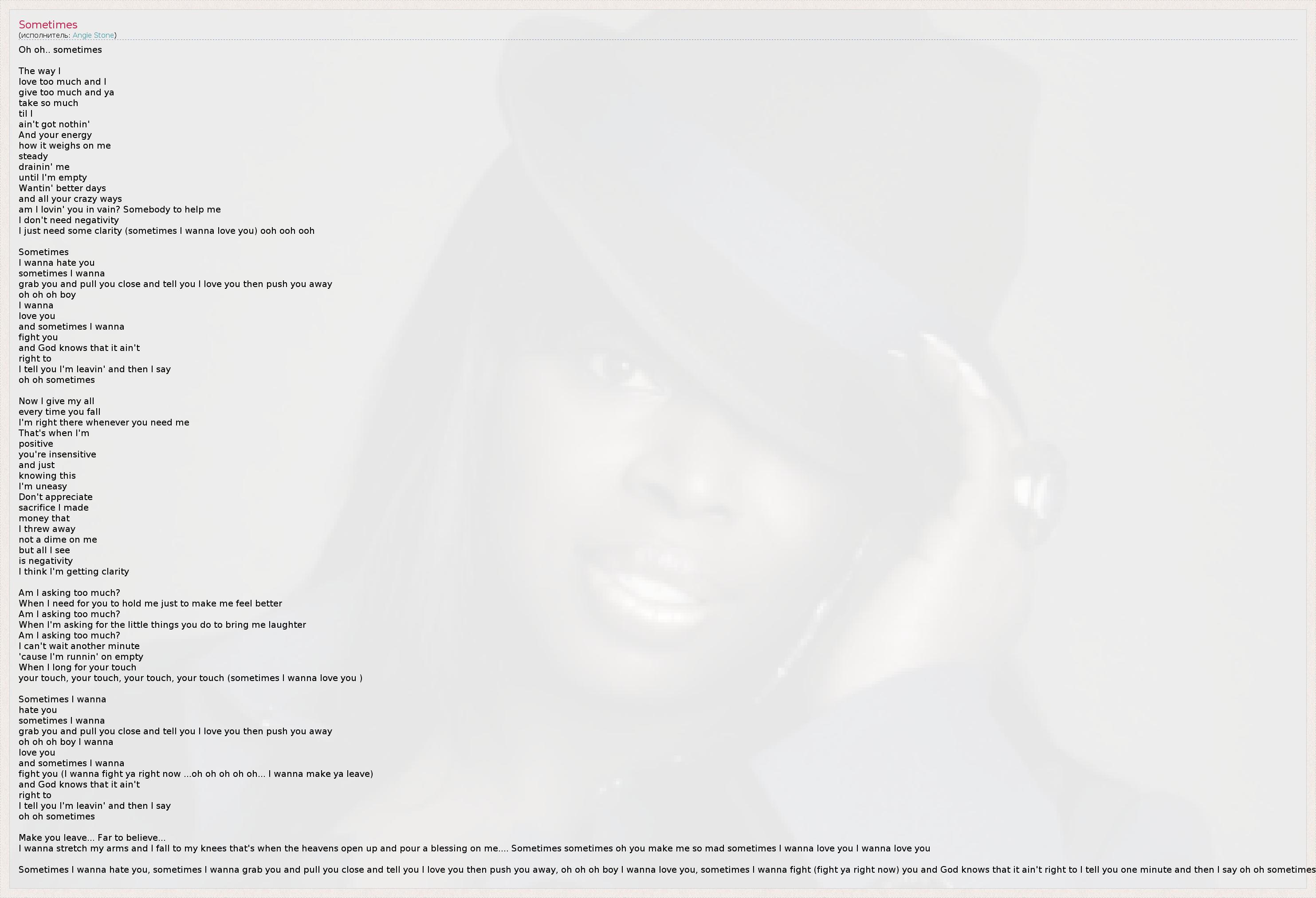 I wanna stretch my arms and I fall to my knees that's when the heavens open up and pour a blessing on me.... Sometimes sometimes oh you make me so mad sometimes I wanna love you I wanna love you