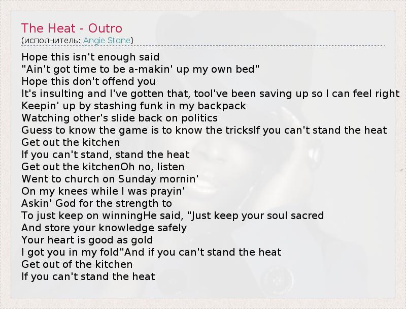 А как ты думаешь, о чем песня "The Heat - Outro" ?