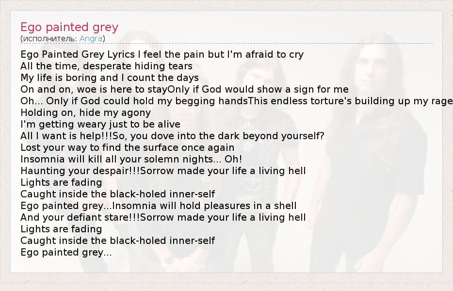 Ego Painted Grey Lyrics I feel the pain but I'm afraid to cry