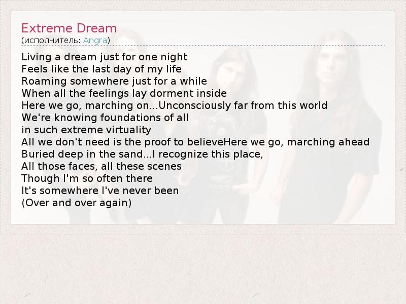 А как ты думаешь, о чем песня "Extreme Dream" ?