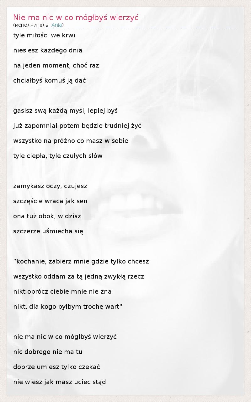 ГлавнаяИсполнителиAniaNie ma nic w co mógłbyś wierzyć