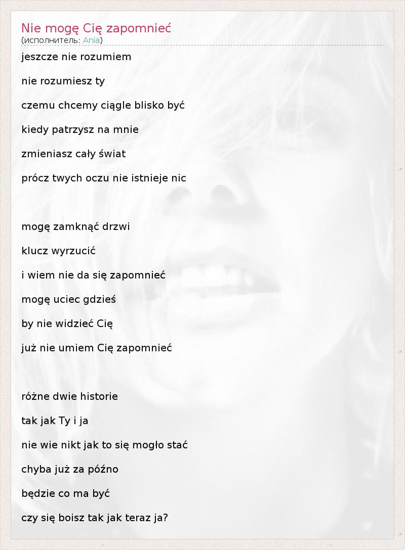А как ты думаешь, о чем песня "Nie mogę Cię zapomnieć" ?