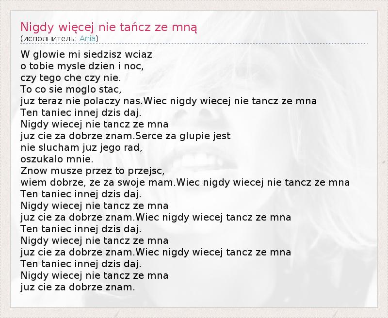 А как ты думаешь, о чем песня "Nigdy więcej nie tańcz ze mną" ?