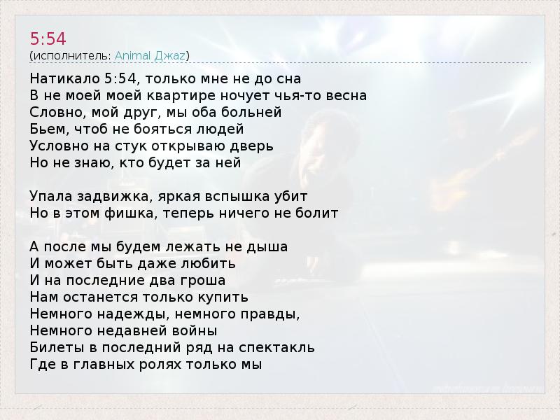 А как ты думаешь, о чем песня "5:54" ?
