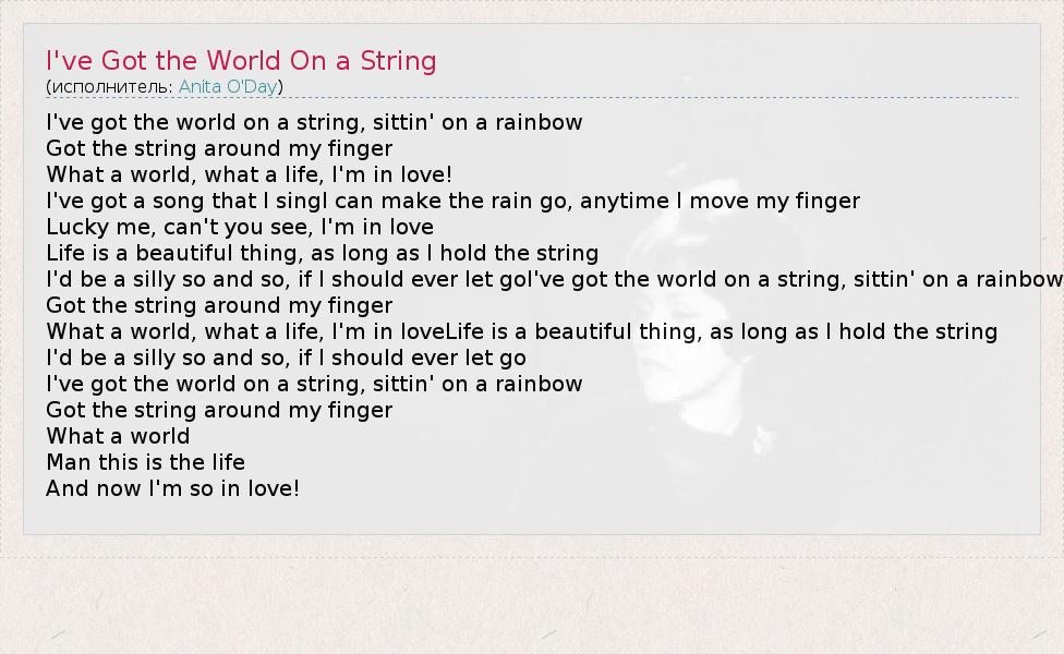 А как ты думаешь, о чем песня "I've Got the World On a String" ?