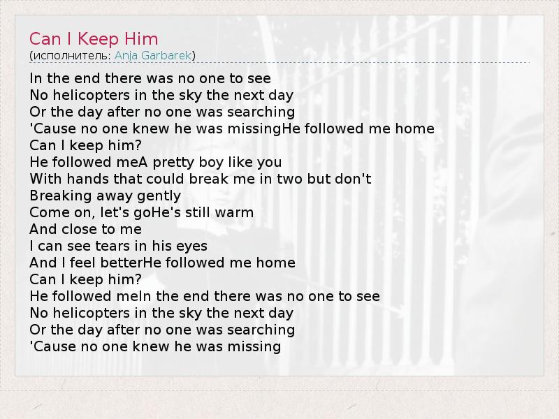 А как ты думаешь, о чем песня "Can I Keep Him" ?