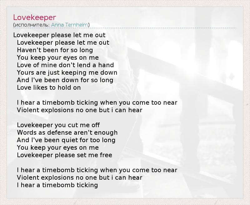 А как ты думаешь, о чем песня "Lovekeeper" ?