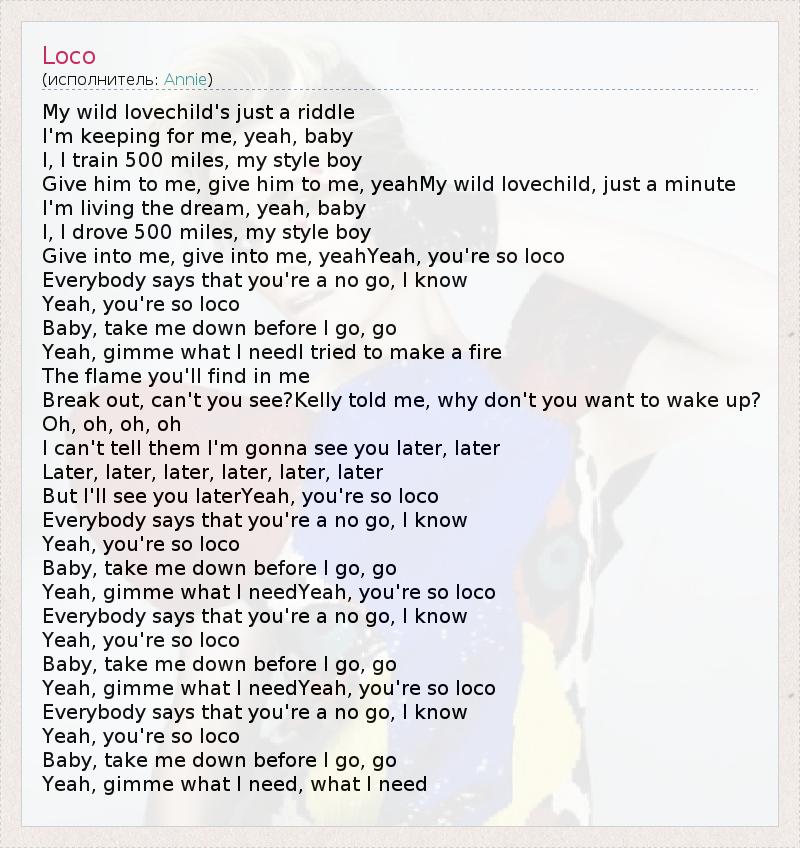 А как ты думаешь, о чем песня "Loco" ?