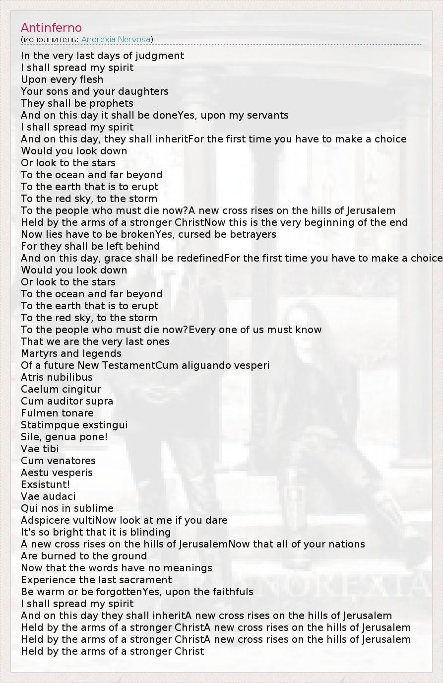 Это интересно:Квинтет Anorexia Nervosa начал свою творческую деятельность в 1995 году под именем Necromancia в качестве группы, исполняющей industrial metal. Правда, вскоре они убедились, что индустриальщики из них откровенно никакие, что можно засвидетельствовать путем ознакомления с их дебютным альбомом 1997 года "Exile": блеклый, вялый, без единой толковой песни, он скорее... продолжение