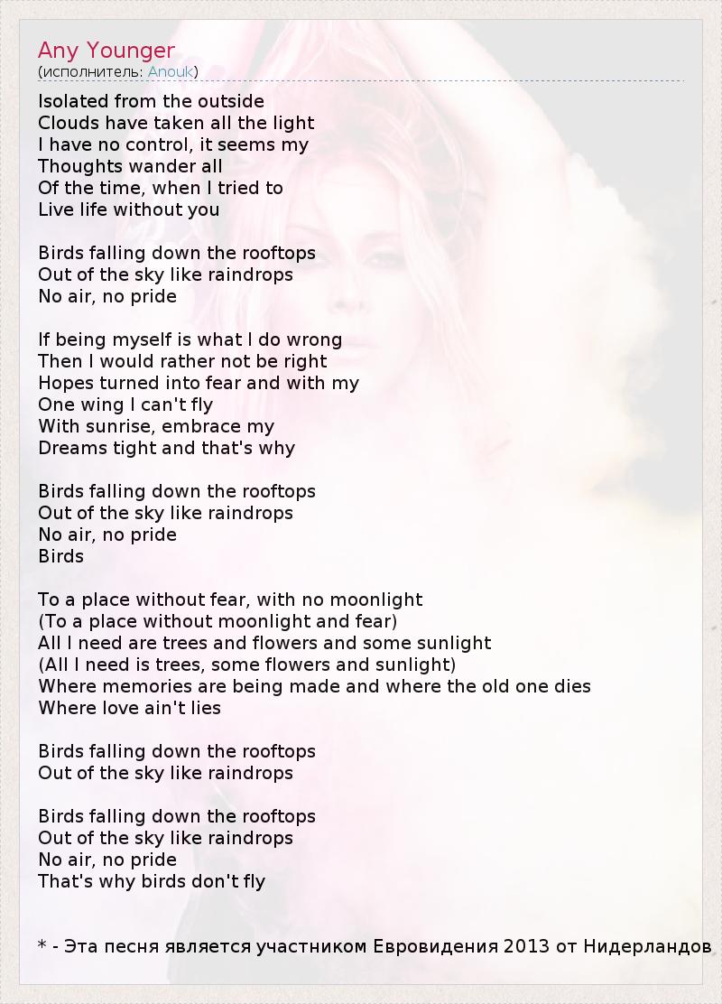 А как ты думаешь, о чем песня "Any Younger" ?