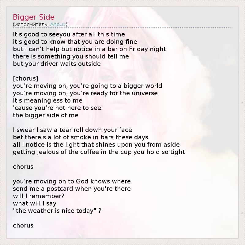 А как ты думаешь, о чем песня "Bigger Side" ?