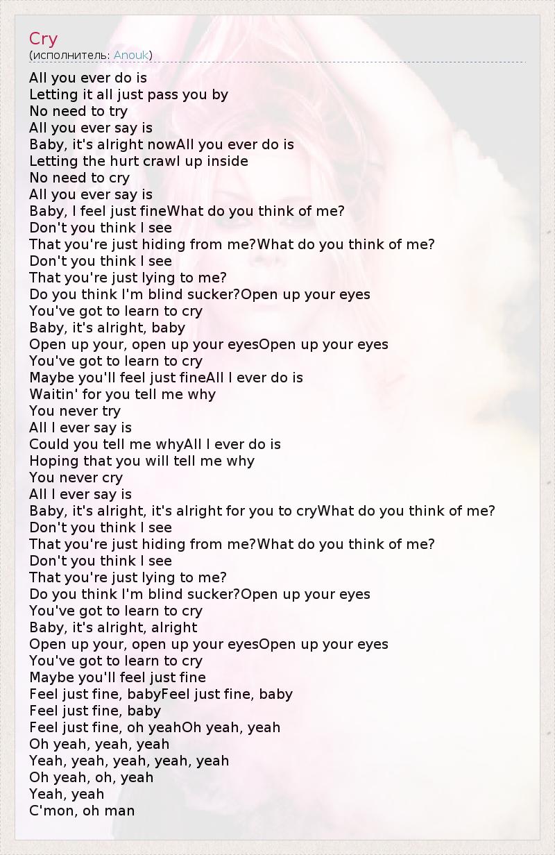 Baby, it's alright, it's alright for you to cryWhat do you think of me?