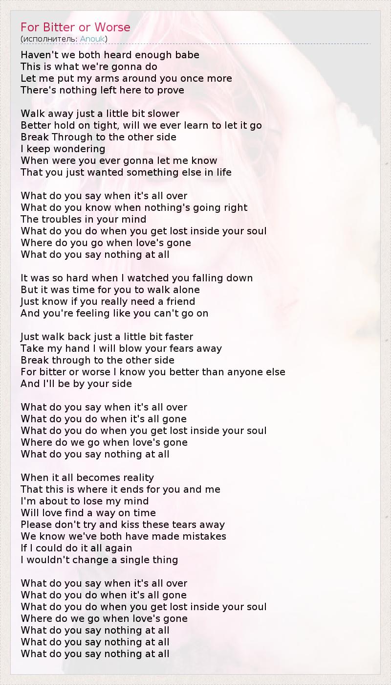 ГлавнаяИсполнителиAnoukFor Bitter or Worse
