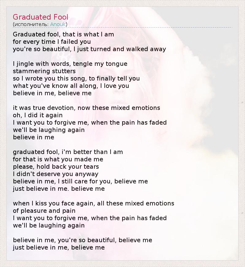 А как ты думаешь, о чем песня "Graduated Fool" ?