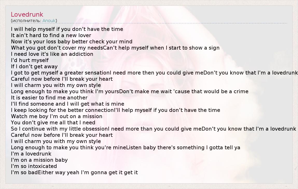 А как ты думаешь, о чем песня "Lovedrunk" ?