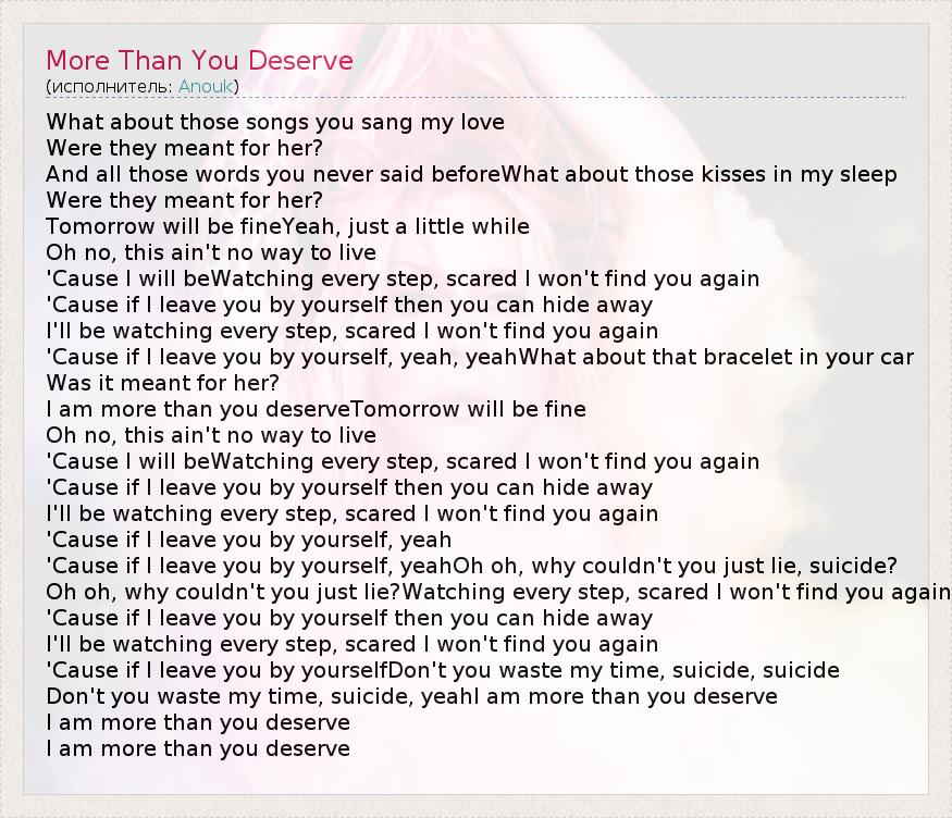 А как ты думаешь, о чем песня "More Than You Deserve" ?