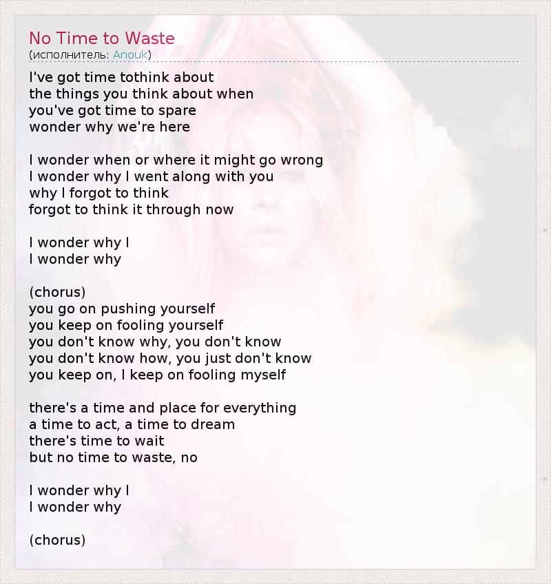 А как ты думаешь, о чем песня "No Time to Waste" ?