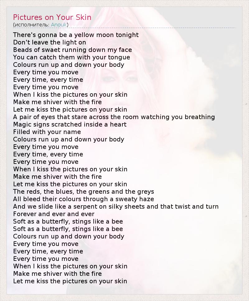 А как ты думаешь, о чем песня "Pictures on Your Skin" ?