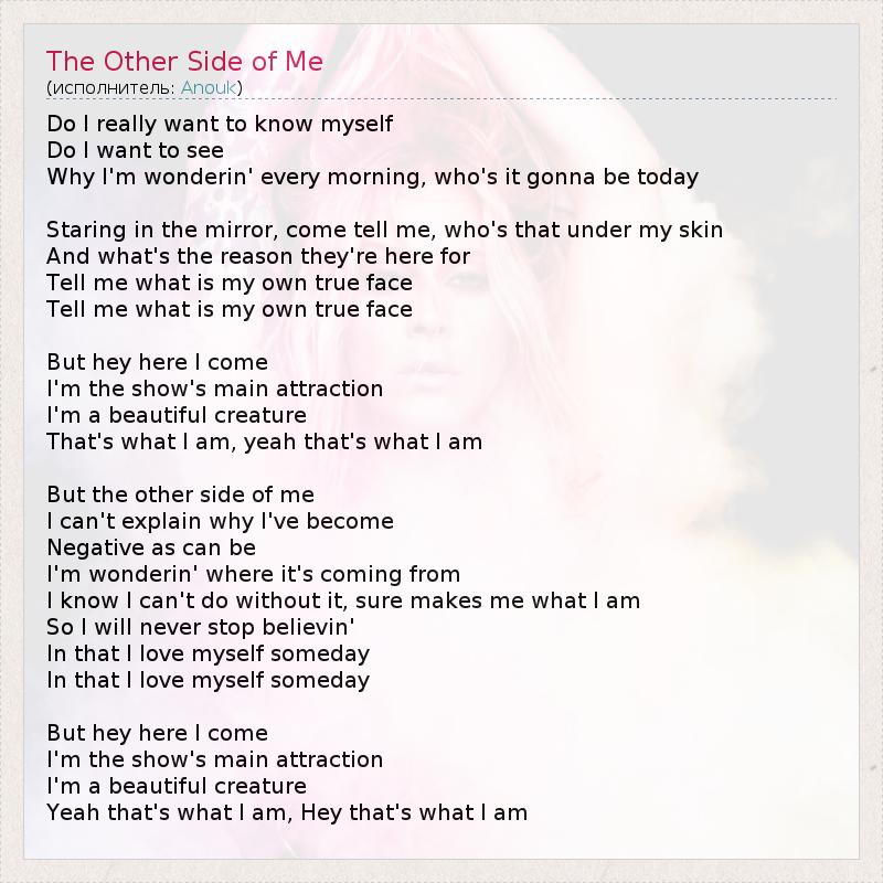 А как ты думаешь, о чем песня "The Other Side of Me" ?