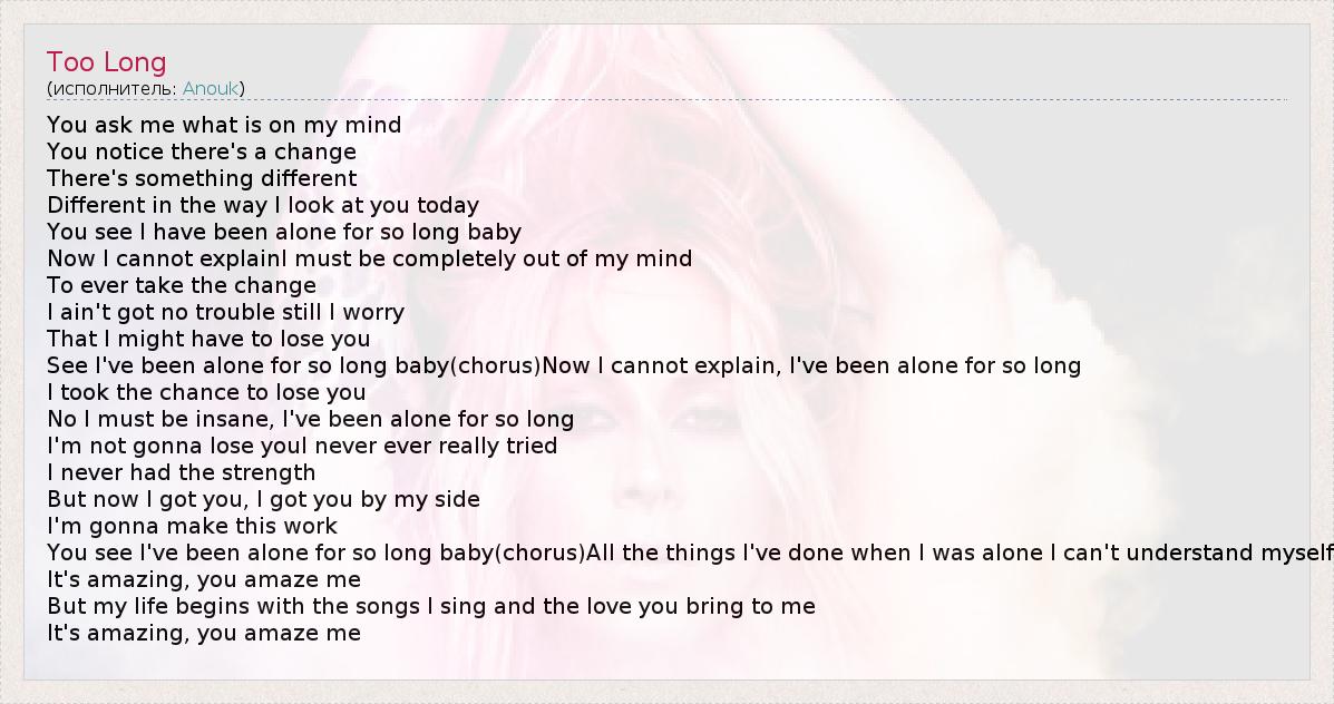 See I've been alone for so long baby(chorus)Now I cannot explain, I've been alone for so long