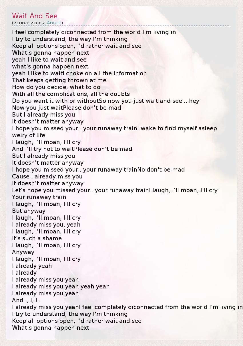 Let's hope you missed your.. your runaway trainI laugh, I'll moan, I'll cry