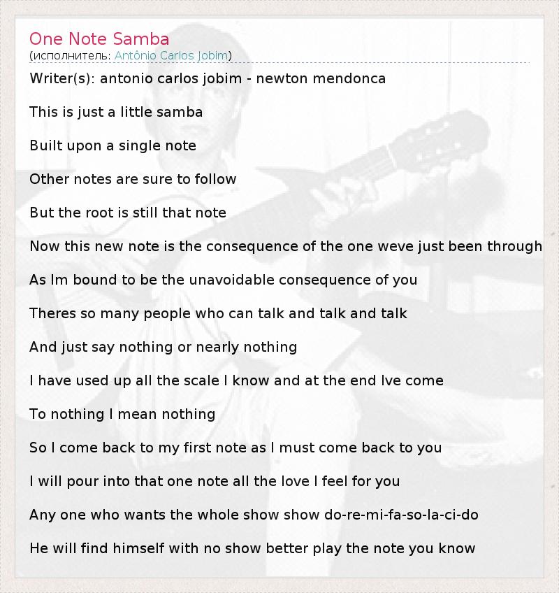 А как ты думаешь, о чем песня "One Note Samba" ?