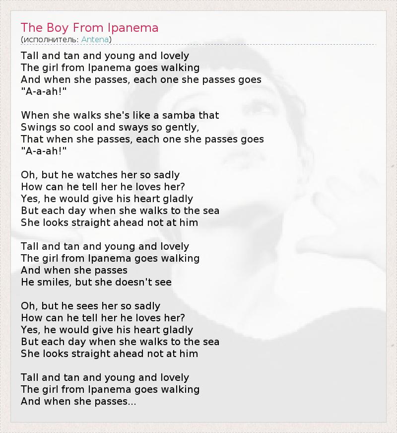 ГлавнаяИсполнителиAntenaThe Boy From Ipanema