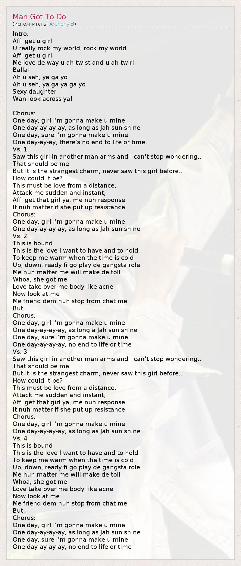 А как ты думаешь, о чем песня "Man Got To Do" ?