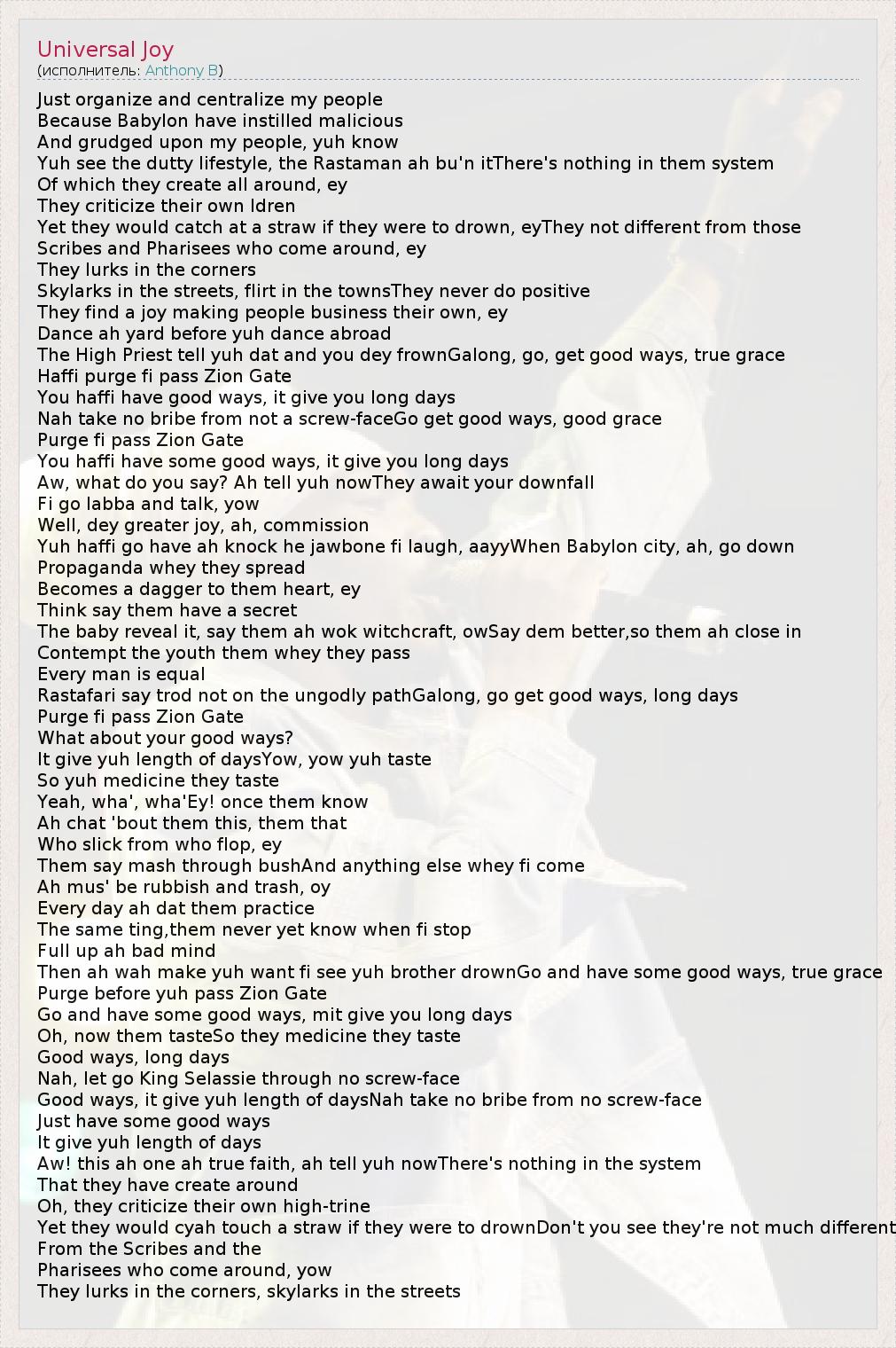 А как ты думаешь, о чем песня "Universal Joy" ?