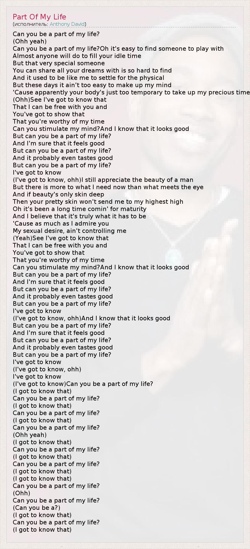 But can you be a part of my life?