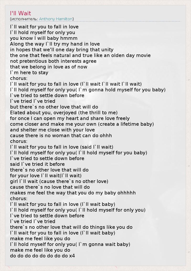 I`ll wait for you to fall in love (said I`ll wait)