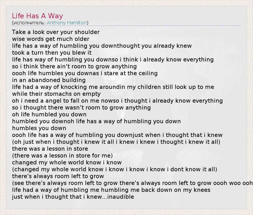 А как ты думаешь, о чем песня "Life Has A Way" ?