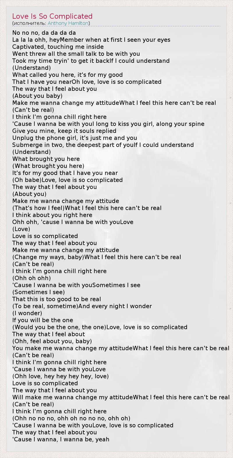 А как ты думаешь, о чем песня "Love Is So Complicated" ?
