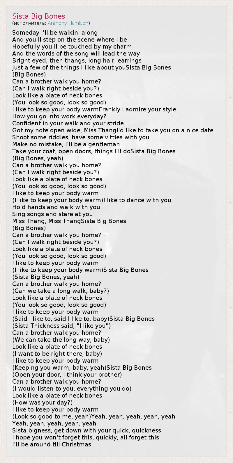 А как ты думаешь, о чем песня "Sista Big Bones" ?