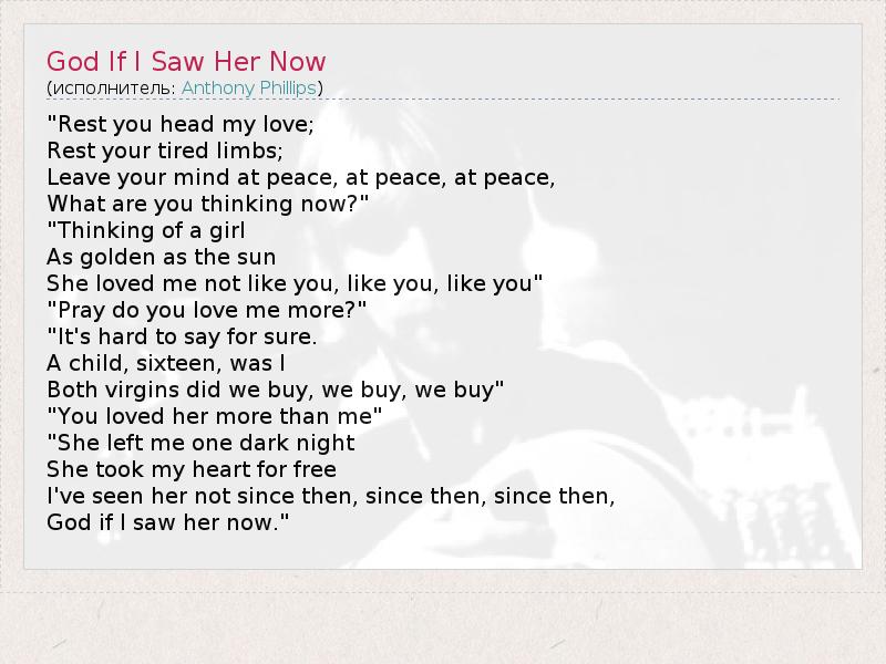 А как ты думаешь, о чем песня "God If I Saw Her Now" ?