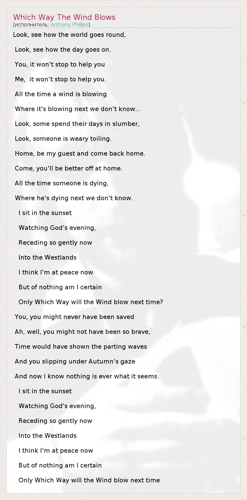 А как ты думаешь, о чем песня "Which Way The Wind Blows" ?