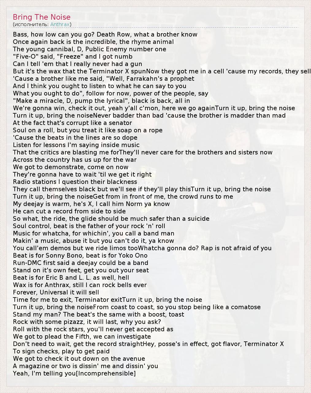 А как ты думаешь, о чем песня "Bring The Noise" ?
